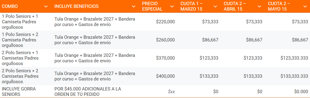 2) Que todos los estudiantes diligencien el formulario de tallas y nicknames. 3) Abono inicial de todos los interesados. Cantidad mínima 30 unidades. tiempo de fabricación máximo 60 días hábiles.